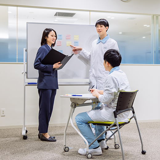 主に「ものづくり」「営業」「研究開発」と「専門領域」の協働によって、トップシェアの商品が支えられ、新しい商品が生まれています。